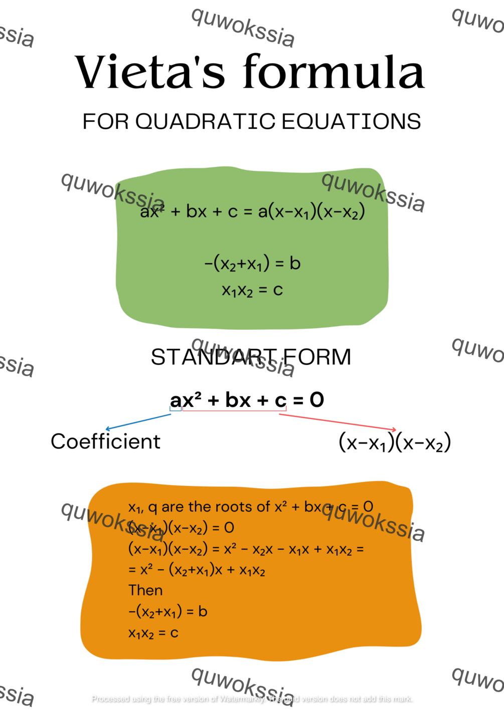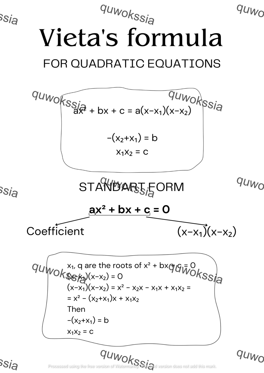 A Handout explaining Vieta's formula. Available in colour and there's a black&white version. Ready for print. Watermarks remove after download :)